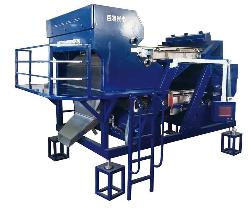 3、高敏感CCD传感器拥有5340像元和12K扫描速度,配合独特的扫描方式,高清识别,高速分选。
