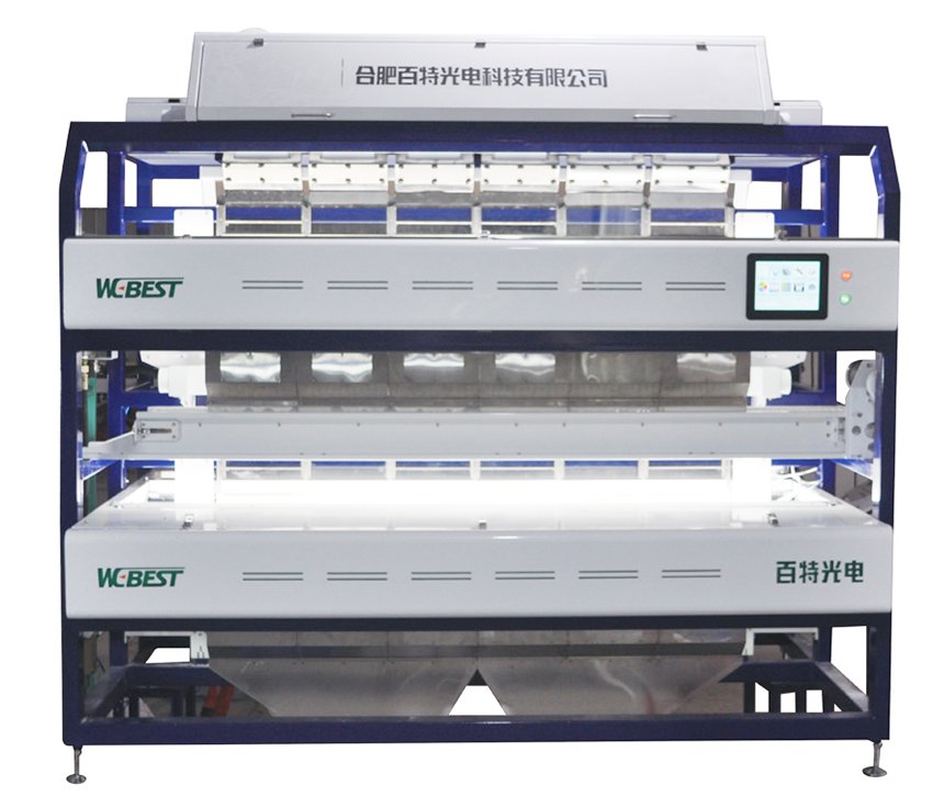 3、高敏感CCD传感器拥有5340像元和12K扫描速度,配合独特的扫描方式,让机器可以选别120目颗粒