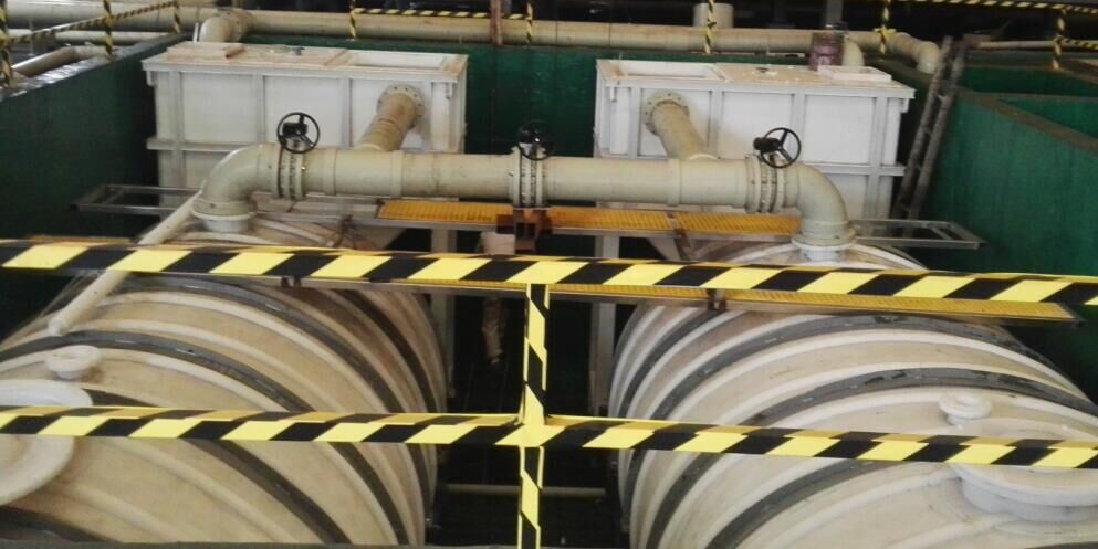配酸槽设置在地坑中,地坑为混凝土结构集水坑作防腐处理(业主自理), 配酸槽设置大流量提升泵2台,排废酸泵1台(排废、加酸切换),配酸槽设置氧化渣过滤池,方便清理废渣。酸洗液报废后,由排废酸泵输送至废酸回收车。