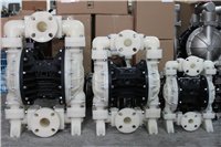 氟塑料气动隔膜泵(上海江莱泵业)是一种**输送机械,是目前国内**颖的一种泵类。采用氟塑料PVDF为泵体材质,采用压缩空气、蒸气、工业废气为动力源,对于各种腐蚀性液体,带颗粒的液体,高粘度、易挥发、易燃、剧毒的液体,均能予以抽光吸尽。此泵主要特点是不需灌引水,既能抽送流动的液体,又能输送一些不易流动的介质,吸程高、扬程可调节(0-50米),气源压力只须大于1kg/cm2即能工作,**防火防爆,具有潜水泵、自吸泵、杂质泵、屏蔽泵、泥浆泵的一切功能等输送机械的许多特点。