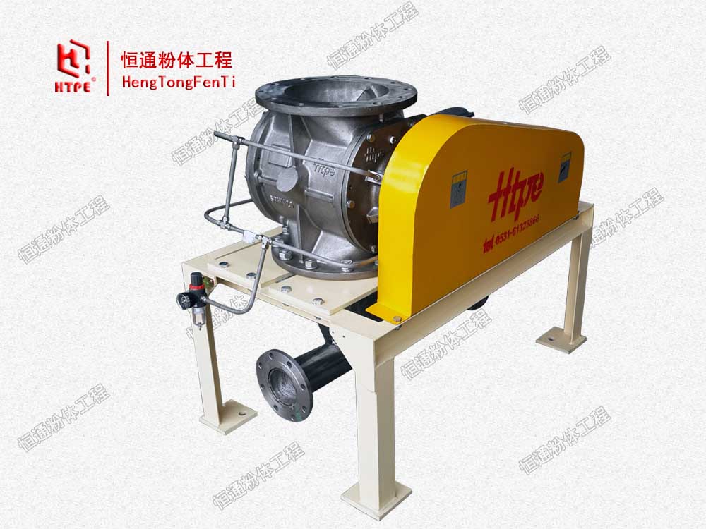 旋转供料器又称锁气器、旋转阀、星型下料器,通常的旋转供料器结构是带有数个叶片的转子在圆筒形的机壳内旋转,从上部料斗落物料,充塞在叶片间的空格内,随叶片的旋转到部而卸出,机体侧面设有均压排气口,可将叶轮回转带来的高压气体从此排走,减少气体顶料现象,有利于物料的顺利下落。对于压送式、吸送式气力输送系统,旋转供料器是主要的组成部件之一,它可以均匀而连续的向输料管内供料;而在系统的分离、收尘部,它又具备卸料器、锁气器的功能。