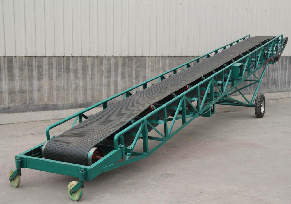 皮带输送机分为带式移动输送机和斗式移动输送机,输送机底部安装有万向轮,可以根据物料的堆放位置随意移动,移动式带式输送机在输送倾斜角度较小的环境下使用,移动式斗式输送机在输送倾斜角度较大的环境下使用,移动斗式输送机,输送带上安装有小型斗子,在输送倾角较大时物料不会出现回落现象。