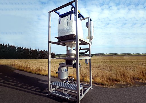 1、吨袋落入全密封式吨袋卸料系统;2、物料经多螺旋精确计量喂料机计量后,由风机送至加药点。