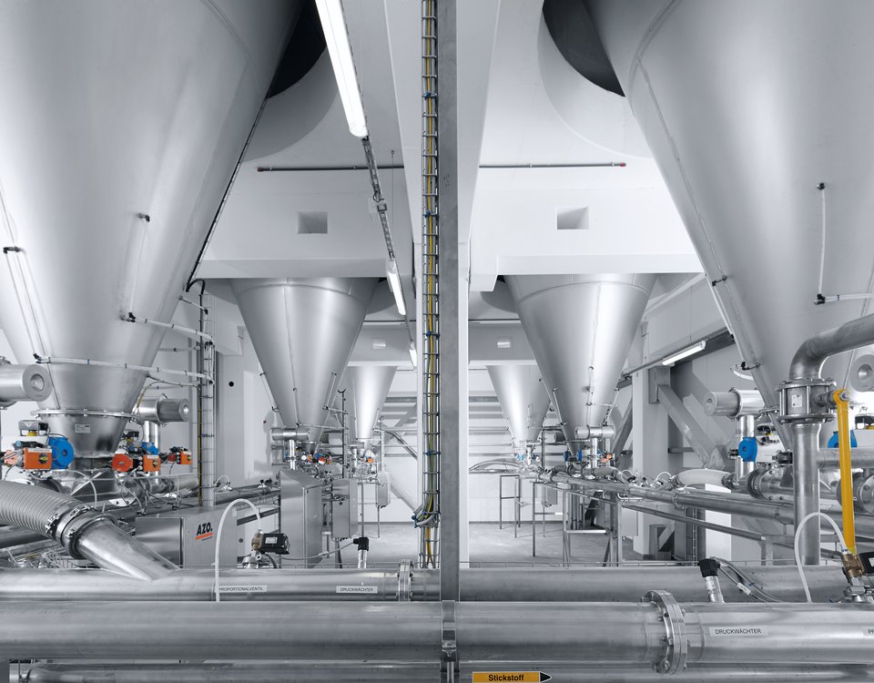 AZO®MULTIAIR 密相输送装置是一个在超压范围内工作的系统。输送压力范围为 1 至 4 bar 超压。根据产品和功率要求对输送压力进行理想设置。该输送系统特别适用于磨料产品,例如PVC 干混料和玻璃纤维增强颗粒,以及用于温和且无离析地气动运输食品,如谷类食品、速溶产品或奶粉。