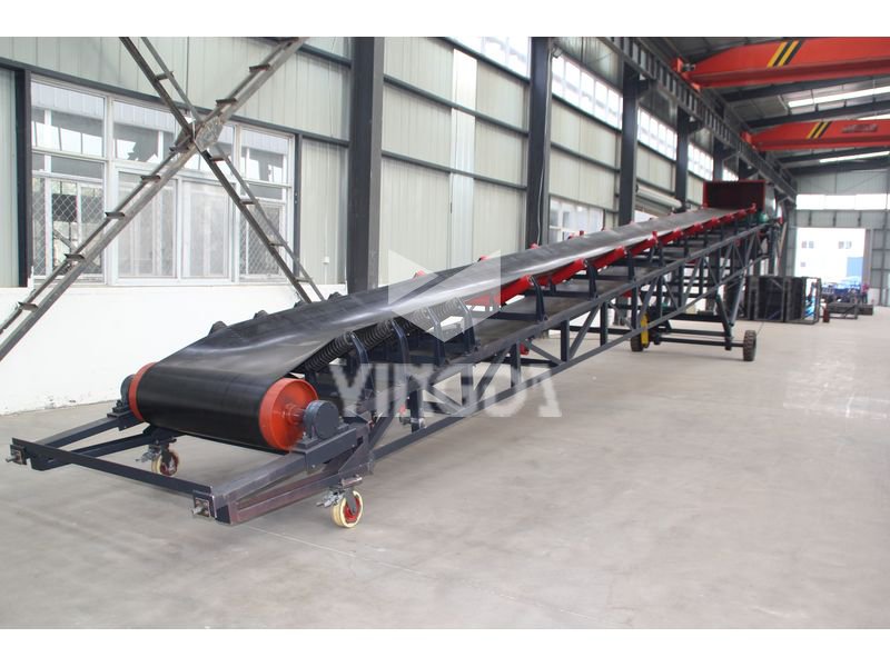 DY型移动式带式输送机适用于散状物料或成件物品的短途运输和装卸工作。适用于煤炭、冶金、矿山、化工、建材、码头、仓库、工地等,特别适合在化肥厂、水泥厂等需要人工装车的环境中使用,是用来短运输及装卸散状物料或成件物品的理想运输设备。节省了大量人员。改装后也可以在餐饮、酿造、服装、电器等流水线作业中使用。转动装置为电动滚筒,并配有充气轮胎和钢轮两种行走轮。机长10米以上倾角可调。