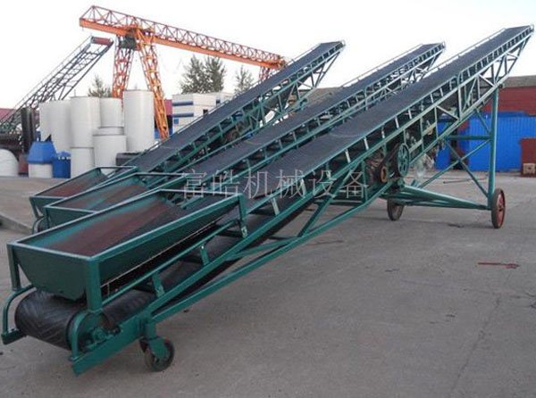 可移动式皮带输送机是一种工效高,使用安全可靠,机动性好的连续输送装卸设备;可移动式、升降式皮带输送机广泛应用于散粮、包粮的运输、堆垛、装卸车等作业,可移动式皮带输送机|移动式皮带输送机适用于煤炭、冶金、矿山、化工、建材、码头、仓库、工地等输送散状物料或箱袋状物品,主要用于装卸地点经常变更动的场所,如:港口、码头、车站、煤场、仓库、建筑工地、沙石料场、农场等,用来短途运输及装卸散料或单件重量100公斤以下的 成件物品。移动式皮带输送机特别适合在化肥厂、水泥厂等需要人工装车的环境中使用,节省了大量人员,移动式皮带输送机稍加改装后也可以在餐饮、酿造、服装、电子等流水线作业中使用。有5米、10米、12米、16米、18米、25米等规格,移动式皮带输送机有电动、手动升降两种型式。采用钢管结构,轻巧美观,机动性好。转动装置为电动滚筒,并配有充气轮胎和钢轮两种行走轮。机长10米以上倾角可调。