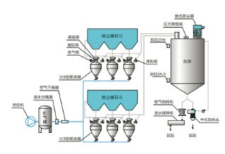 气力输送设备由四大部分组成:气源部分、料封泵、落灰斗及落灰管、输灰管道