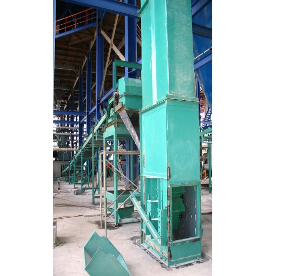 3、驱动功率小。这类提升机采取流入式喂料,重力诱导式卸料,且采用密集型布置的大容量料斗输送,链速低提升量大。物料提升时,几乎无回料和挖料现象,因此无效功率少,所耗功率是环链提升机的70%。