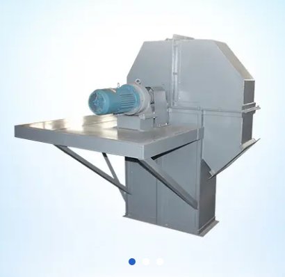 斗式提升机料斗把物料从设备底座下储藏中舀起,随着牵引构件提升到设备顶部,绕过顶轮后向下翻转,斗式提升机将物料倾入接受槽内,完成卸料。带传动(牵引构件)的斗式提升机的传动带一般采用橡胶带,装在下面或上面的传动滚筒和上下面的改向滚筒上。链传动(牵引构件)的斗式提升机一般装有两条平行的传动链,上或下面有一对传动链轮,下或上面是一对改向链轮。斗式提升机一般都装有机壳,以防止提升过程中物料粉尘飞扬。
