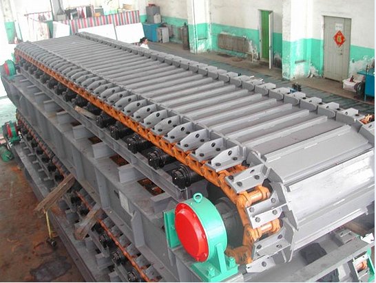 链板输送机主要用于仓储、造纸、矿山、煤矿、冶金化工等诸多行业的散装、块状物品的输送。主要是用于物料从地面到高处设备内的输送,起到连续均匀喂料作用。该机设计结构合理,采用板链传动,带动槽板运动而输送物料,具有输送能力大,动力消耗小,磨损少,工作可靠等优点,经多种行业使用,是目前散装、块状原料输送机械的理想的专用设备。说明;(1)可做水平输送或倾斜度小于30°的输送(2) 电机选用调速电机和减速机,用户可根据需要调节链板转速.(3)为了满足用户需要,考虑到工艺布置要求,链板输送机传动装置分右装和左装两种(顺物料运行方向看,传动装置在机器右侧的为右装,反之为左装),用户单位可根据工艺设计要求选用链板输送机装配形式。