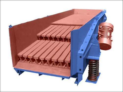 该系列振动给料机新型振动电机或激振器激振,框架式环槽铆钉铆接,锰钢制造的护板和棒条,结构坚固,强度高,耐冲击,耐磨损,使用维护方便。