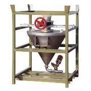 采用下吸料方式,可实现上料过程的全自动化操作,彻底改变制药行业中普遍存在的粉体物料上料过程对周围环境造成的污染、以及对操作工人身体健康造成一定影响的问题。 一般来说,我们只需在漏斗底部的出料口与输送管的连接处附近,安装一个肘形管、一个空气过滤装置、一个控制球阀(左下图),用于辅助下料,另一端与真空输送设备的吸料软管相连,即可完成下吸料的整个工艺过程。 对流动性不好的物料,可在漏斗的两侧安装一至二个振动器来辅助下料,就可得到很好的效果。