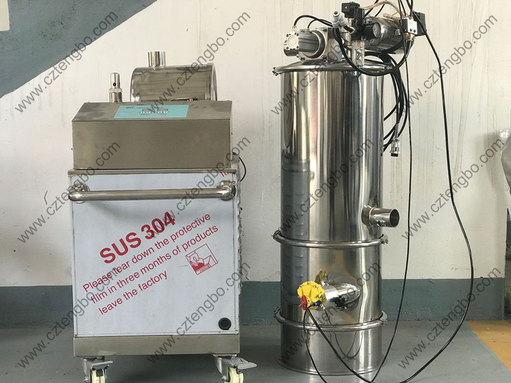 气动式真空上料机是利用压缩空气通过真空发生器产生高真空实现对物料的输送,不需要机械式真空泵,具有结构简单、体积小、免维修、噪音低、控制方便、消除物料静电和符合GMP要求等优点。真空发生器产生的高真空,使被输送的物料杜绝了分层现象,保证了混合物料成份的均—性,是压片机、胶塞填充机、干法制粒机、包装机、粉碎机、振动筛等机械自动上料的**设备。