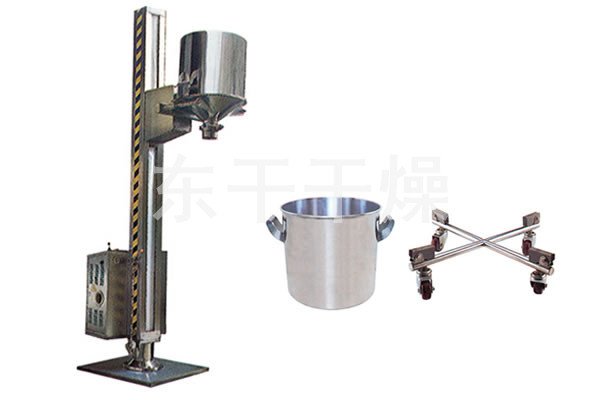 系列固定提升加料机由两部分组成,即提升机及底座。提升机由机架、液压提升系统及料门翻转机构组成。工作时,先将提升机的料门与料桶扣合,启动提升操作杆,料门与料桶一起上升,启动翻转操作杆,料桶即可番转180度,呈底桶向上姿态并移动到所需位置,利用料门上出料蝶阀,可很容易将物料加入所需的工艺设备中。