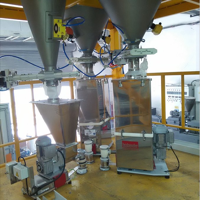 给料方式:单、双螺旋给料,微量双螺杆失重式喂料,液体失重式喂料,振动失重式喂料