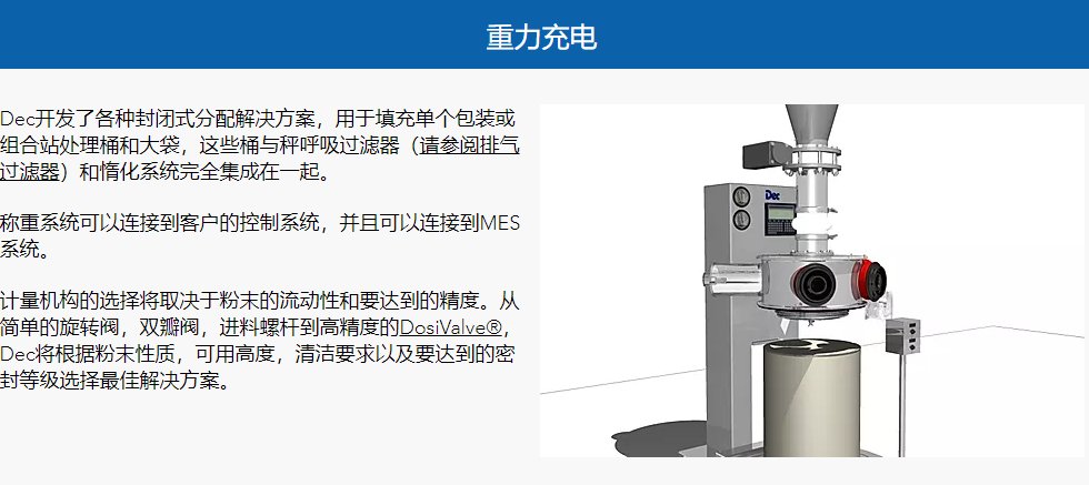 Dec提供了广泛的解决方案,用于填充包装,例如袋,带衬里的桶或大袋,始终*适合粉末特性,容纳水平,布局和所需的精度。
