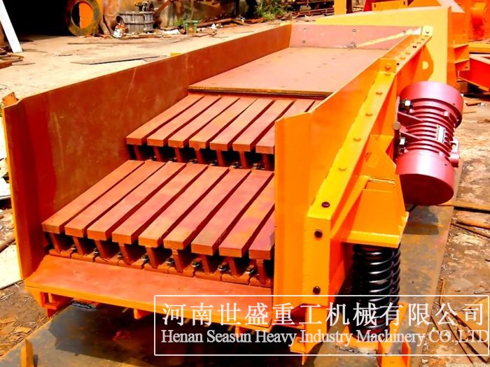 振动给料机又叫振动喂料机。振动给料机在生产流程中,可把块状、颗粒状物料从贮料仓中均匀、定时、连续地给到受料装置中去,在砂石生产线中可为破碎机械连续均匀地喂料,并对物料进行粗筛分,广泛用于冶金、煤矿、选矿、制砂、建材、化工、磨料等行业的破碎、筛分联合设备中。