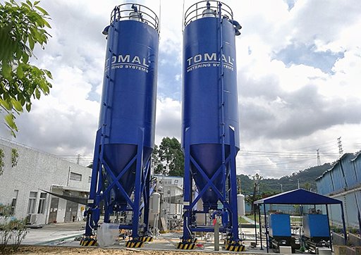 1、物料通过散装槽车车载风机送入储料仓存储待用;
