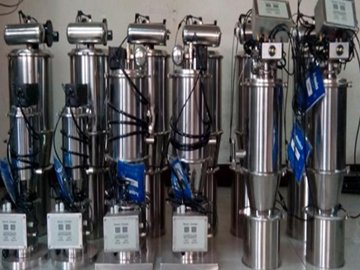 真空加料机目前是国内较为先进 、理想、完善的粉状料、粒状料、粉粒混合料的真空输送设备,真空加料机能自动地将各种物料输送到料仓、包装机、注塑机、粉碎机等设备的料斗中,也能直接把混合的物料输送到混合机中,减轻了工人的劳动强度,解决了加料时粉尘外溢等问题。真空加料机由真空泵(无油、无水)、真空料斗、过滤器、压缩空气反吹装置、气动放料门装置、料位自动控制装置、吸料咀、输送管等组成。缺点是产能低,连续性差。