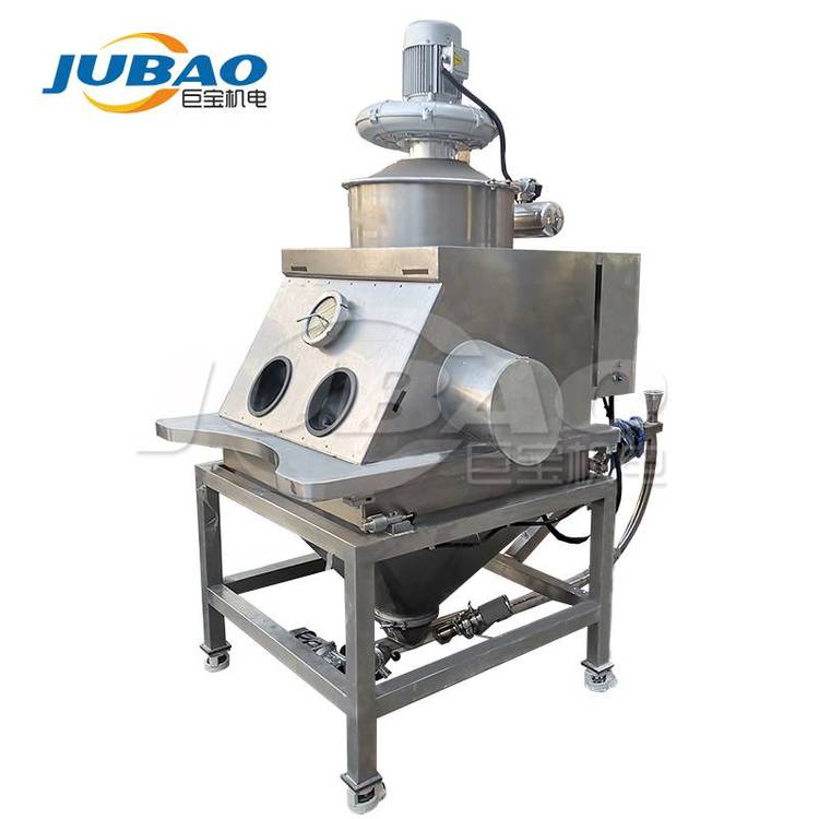采用除尘过滤式投料操作台可以实现人工投料过程无粉尘外溢,解包后的物料进入投料台内部的锥体内,外溢的粉尘在洋溢过程中被强大的负压气流所吸附,而后被过滤滤芯所阻止,干净的气体则经过滤芯内部再经风机排出;