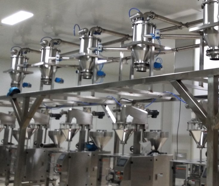真空上料机原理:采用压缩空气做为动力源,它驱动射频真空发生器产生负压即真空,以实现对物料的输送,这种真空加料机具有体 积小,结构简单,易于维护,控制系统操作方便。同时该设备有效的防止物料静电,它相比电动泵真空加料机具有噪音低的优点,它 形成的真空即负压较高使被输送的物料杜绝了分层现象,这样混合后的物料均匀性得到了保证,符合 GMP 要求。 全自动真空上料机广泛用于塑料、橡胶、化工染料、医药行业粉料、粉食行业、矿业、粒料、粉粒混合料的自动输送,无需机械能。 真空上料机特点: 1.输送配置灵活,使生产工艺流程更合理; 2.输送过程完全封闭,粉尘飞扬少,可实现环保要求; 3.运动零部件少,维修保养方便,易于实现自动化; 4.散料输送效率高,降低了包装和装卸运输费用; 5.能避免被输送物料的受潮、污损和混入其他杂物,保证了输送质量; 6.可将由数点集中的物料送往一处或由一处送往分散的数点,并实现远距离操作;