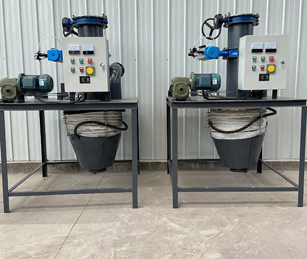 水泥散装机的工作原理:水泥散装机库内部分通过支架吊挂在水泥库内部,以10%的斜度放置,以使水泥料仓内的水泥粉呈流态化(此高压压缩空气由用户自备罗茨风机或由厂内压缩空气总管经减压后接入)。“出料连接槽”、“输送斜槽”在水泥库外按出料顺序连接同样以10%的斜度放置,正常使用时打开。“卸料闸门”用来控制散装机装车时的水泥落料状态;“斜槽风机”用来使输送斜槽内水泥物料流态化。散装机为其主体设备,其下料头伸缩长度为1.6米,以适应不同车型的装车要求。本散装机伸缩管下降至罐形容器入料口位置的停止及料装满时卸料闸门的关闭均为自动控制,下料头的内、外伸缩管间接除尘器,装车时无粉尘飞扬。