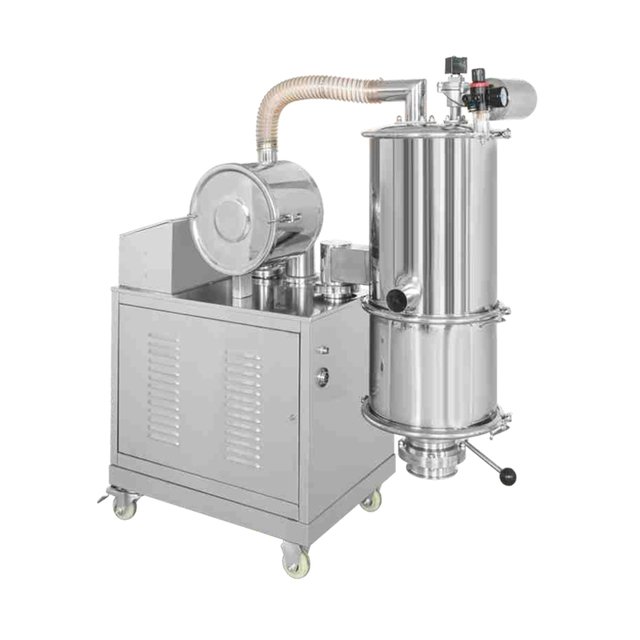 真空上料机又名真空输送机,真空吸料机,产品是引进当今德国先进的技术,整个输送过程完全在密闭的状态下完成,杜绝粉尘对工作环境、周边环境和操作人员所带来的污染和人身伤害,整套设备投资小,降低了维修费用,该设备一次安装调试投运后,几乎没有维护量,检修工只须定期检查、保养即可,适用于化工、食品、塑料、医药、冶金、玻璃、建材、粮食、化肥、磨料、碳素、树脂粉、陶瓷等行业。