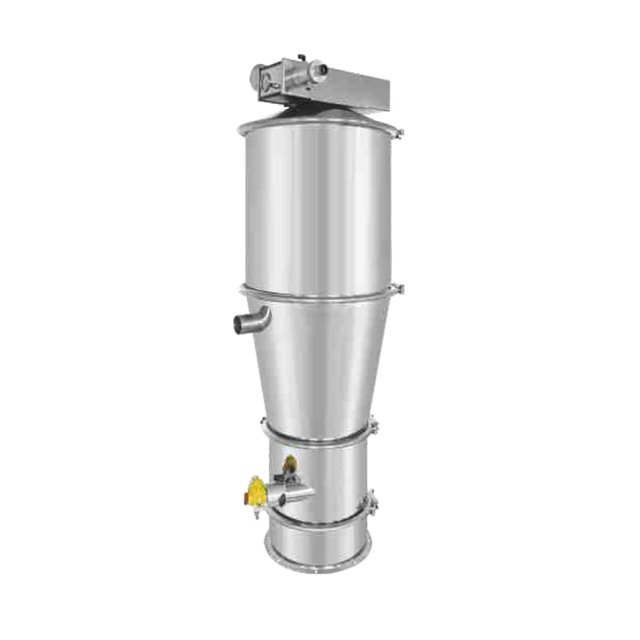 气动式真空上料机是利用压缩空气通过真空发生器产生高真空实现对物料的输送,不需要机械式真空泵,具有结构简单、体积小、免维修、噪音低、控制方便、消除物料静电和符合GMP要求等优点。真空发生器产生的高真空,使被输送的物料杜绝了分层现象,保证了混合物料成份的均一性,是压片机、胶囊填充机、干法制粒机、包装机、粉碎机、振动筛等机械自动上料的**设备。