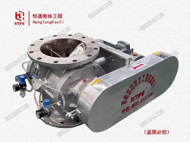 旋转供料器又称旋转阀、星型下料器、锁气器。恒通防卡旋转供料器特点:上进料口为圆形标准法兰;机壳进口设计为W形进口防卡结构;适用于粉状和颗粒状物料的输送,在各行业得到了广泛的应用。通常的旋转供料器结构是带有数个叶片的转子在圆筒形的机壳内旋转,从上部料斗落物料,充塞在叶片间的空格内,随叶片的旋转到部而卸出,机体侧面设有均压排气口,可将叶轮回转带来的高压气体从此排走,减少气体顶料现象,有利于物料的顺利下落。对于压送式、吸送式气力输送系统,它可以均匀而连续的向输料管内供料;而在系统的分离、收尘部,它又具备卸料器、锁气器的功能。不锈钢旋转供料器是为食品行业准备的气力输送设备