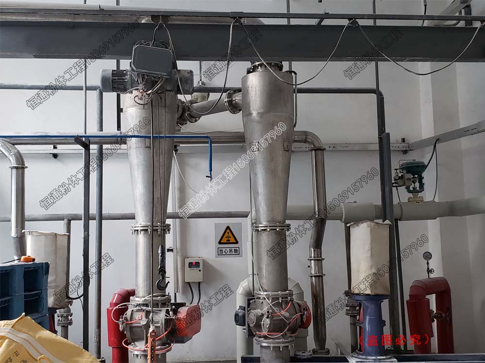 我们恒通粉体为客户定制了一条正压高强石膏粉气力输送系统,该项目参数水平距离20m、垂...