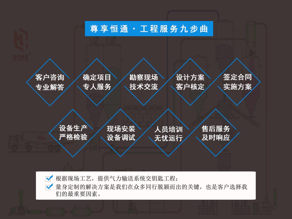 我们恒通粉体为客户定制了一条正压高强石膏粉气力输送系统,该项目参数水平距离20m、垂...