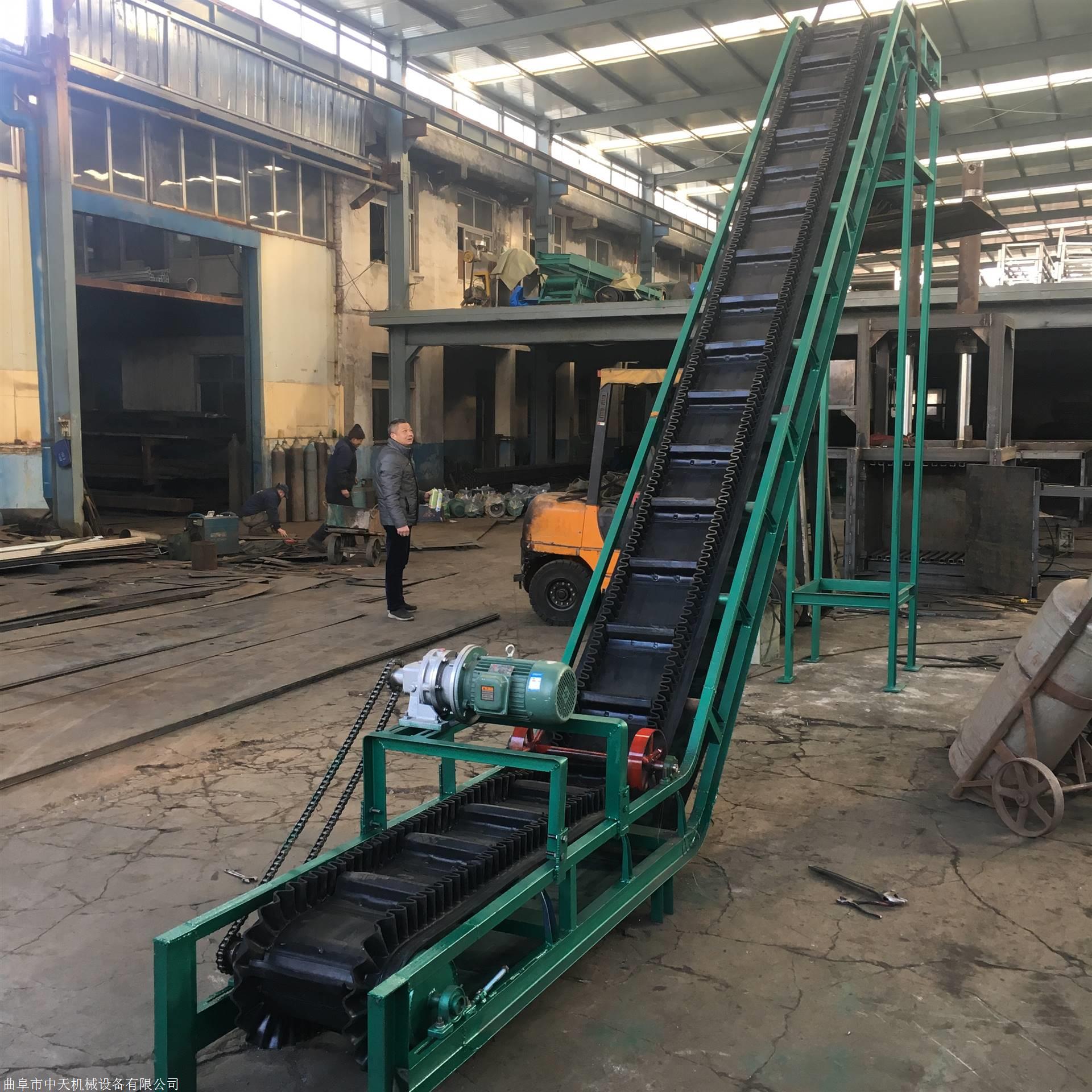 大倾角皮带机又称大倾角挡边式带式皮带机,是一种新型连续输送设备。它具有输送量大(同其它皮带机相比,输送能力提高1.5~2倍);其通用性强(基本件与通用型带式皮带机相同)。适用于单位质量为500~2500kg/m,**块度约为100~250mm的物料。结构简单、维护方便、占用空间小、便于布置且节省投资,因而在煤炭、电力、冶金、化工、粮食等行业被广泛推广使用。