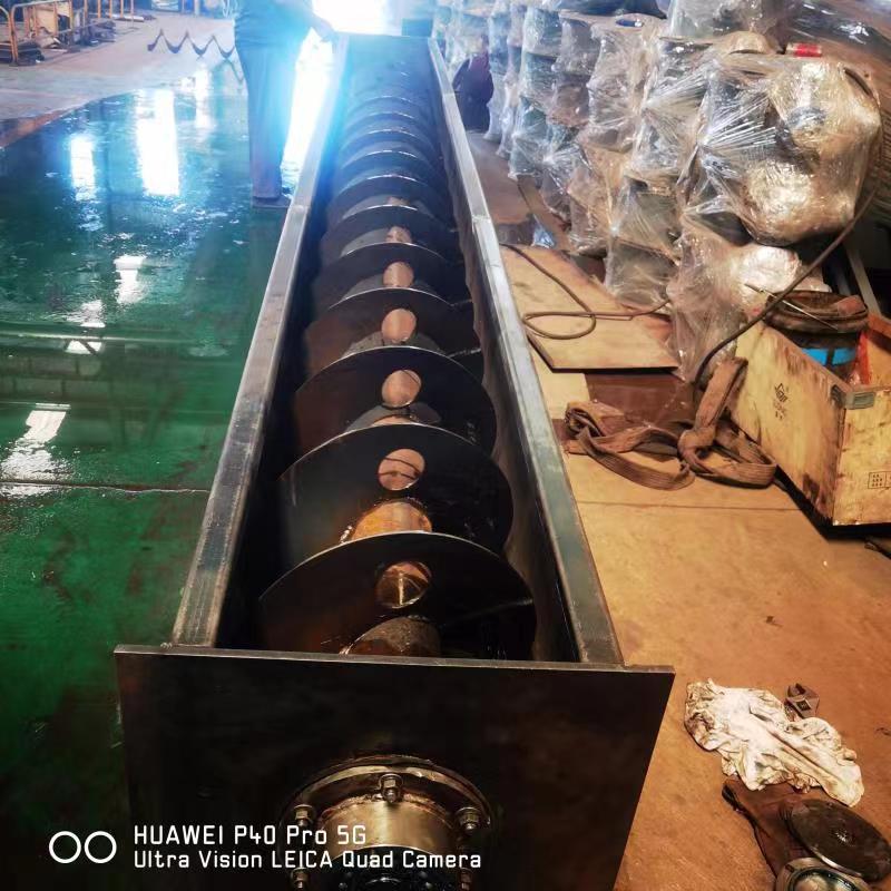 螺旋管输送机是在圆筒形机壳内焊有连续的螺旋叶片,机壳与螺旋叶片一起转动。加入的物料由于离心力和摩擦力的作用随机壳一起转动并被提升后,在物料的重力作用下又沿螺旋面下滑,使物料随螺旋管一起旋转从而实现了物料的向前移动,如同不旋转的螺杆沿着转动的螺母作平移运动一样,达到输送物料的目的。