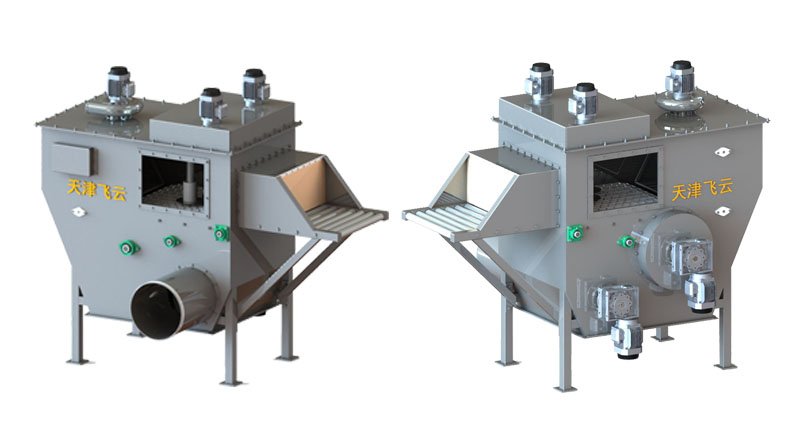 SDCD-1双刀自动拆包机由网链传送装置、袋子自动入钩脱钩装置、双刀切割装置、导向装置、废袋收纳装置、除尘器、机箱、控制系统等组成。