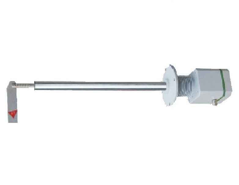 该料位计是在传统阻移(阻旋)式料位计的基础上,增加了循环时间控制装置而形成的一种新型料位计。它由微电脑时间控制器控制电机的运转,使它做断续循环运转,同时带动测量叶片做断续循环运转。当叶片碰到被测物料时,由于物料的阻挡作用,使叶片受阻不能转动,而电机继续转动,使脱扣器脱扣,触动继电器电源开关。继电器得电工作,输出被测物料已到限定高度信号,同时切断电机电源,电机停止工作,并一直保持这个状态不变。