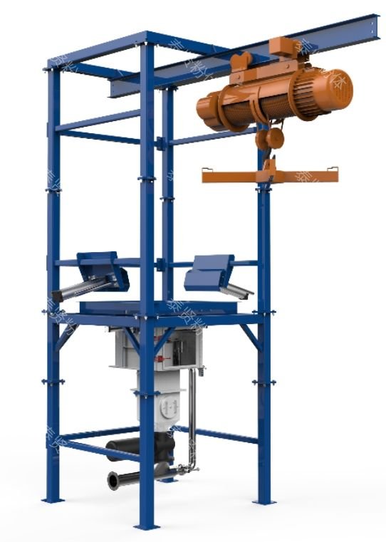 吨袋投料站是粉体设备中的卸料设备,吨袋投料站又称吨袋拆包机,为了防止吨袋开袋过程中粉尘扬抑造成环境影响及对员工身体造成伤害,现多数企业在投料开袋时均会采用吨袋投料站。