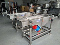 直线筛(直线振动筛)利用振动电机激振作为振动源,使物料在筛网上被抛起,同时向前作直线运动,物料从给料机均匀地进入筛分机的进料口,通过多层筛网产生数种规格的筛上物、筛下物、分别从各自的出口排出。具有耗能