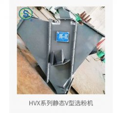 HVX系列静态V型选粉机工作原理和特点HVX型静态V型选粉机是利用重力、惯性和空气动力,对粒度在0-5mm之间的物料进行打散分级。物料由上部进料口喂入形成料幕,入机气流从进风口穿过料幕,与物料实现接触