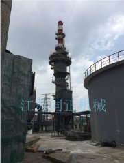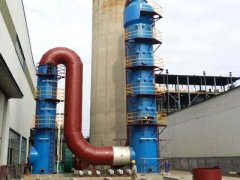 双塔水膜脱硫除尘器主要由主筒体、副筒体、塔体过桥、溢流水槽、注水盘管、溢水孔、注灰孔、烟气进出口等组成。设备模块式分体出厂,现场吊装组合,施式周期短。
