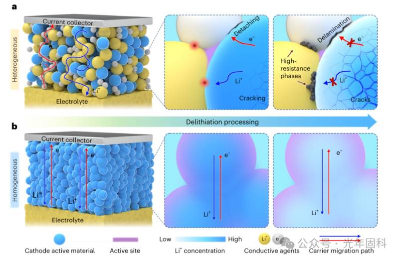 【引言】全固态电池被寄予厚望,但传统电极的“拼凑式设计”一直是商业化拦路虎——活性材料、电解质、导电剂层层叠加,形成无数异质界面。这些界面就像能量传输的“关卡”,不仅导致电荷传输绕路、效率低下,还容易引发化学反应和结构破裂,让电池性能快速衰减。而均质化电极的出现,彻底改写了这一局面。它以“100%活性材料”的极简设计,从根源上消除界面矛盾,再加上独特的自修复机制和复合策略,让全固态电池的界面稳定性和传输效率实现双重突...