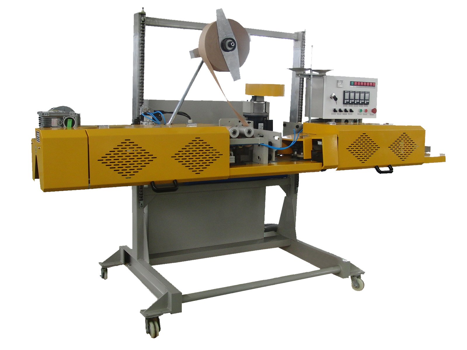 复合袋的包装,该机可按编程自动完成包装袋袋口的除尘、修剪、缝合、剪线辫、包纸带、剪纸带、热封、压合、计数等工序。经封口、缝合、包纸带、热压的包装袋密封性能**,可防尘、防蛀、防污染,使包装物受到妥善的保护。