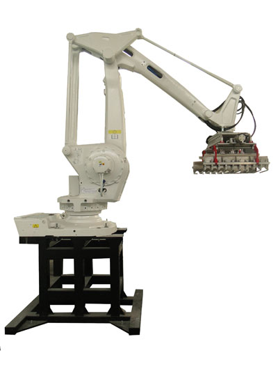 码垛机是将装入容器内(如:纸箱、编织袋、桶等)的物料或者是经过包装和未经包装的规则物品,按一定顺序一一吸取(抓取)该物件排列码放在栈板上或者托盘(木质)上,进行自动堆码,可堆码多层,然后推出,便于继续进行下一步包装或者叉车运至仓库储存。码垛机实现智能化操作管理,可大大地降低了劳动人员和劳动强度,同时对物品起到了一个很好的保护,具有防尘、防潮、防水,防晒,以及防止在运输过程对物品的磨损等。所以广泛应用于化工、饮料、食品、啤酒、塑料等生产企业;对各种纸箱、袋装、罐装、啤酒箱、瓶装等各种形状的包装成品的自动码垛。