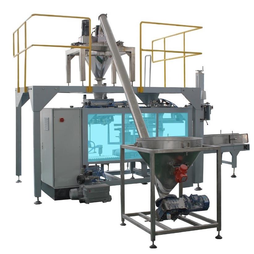 该机具有自动称量、自动上袋、自动填充、自动送包、自动封口等功能。可与各类设备联动工作,实现大规格包装无人化生产作业。对于容易扬尘的超细粉末、及高精度的含气量大的粉体包装,具有强烈的针对性