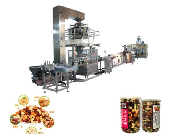 罐装混合坚果灌装机适用于颗粒类物料,如每日坚果,混合麦片,水果麦片,坚果麦片,五谷杂粮,混合干果,混合蔬菜,八宝茶,八宝粥等颗粒物料的自动计量包装。特点是包装精美,可以带拉链袋子,自立袋等多种包装效果,可以满足不同人群的需要