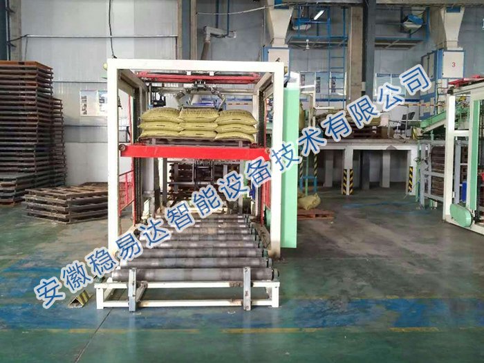 11、自动进托、自动出垛、码包整齐比机械手好;