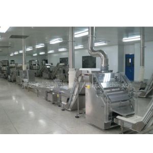 浓缩丸生产线,是我公司根据浓缩丸工艺特而设计开发的丸剂生产成套设备。其工艺流程为:混粉----搅拌----炼药----制丸----晾丸(撒粉防粘)----整型上光----筛丸----微波干燥----选丸----包衣,后进入包装工序,在其生产过程中基本无需人工周转,节省人工,限度的减少药品的染菌的机会。