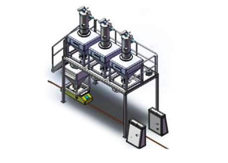 按照生产指令和配方,将多种物料分別投入无尘投料站,真空输送器将物料输送到高位暂存料仓,螺旋喂料器将物料定量加入至AGV移动小车上面的称量料仓,在加料过程、重量、精度符合配方要求,投量、输送、计量过程中无粉尘泄漏。