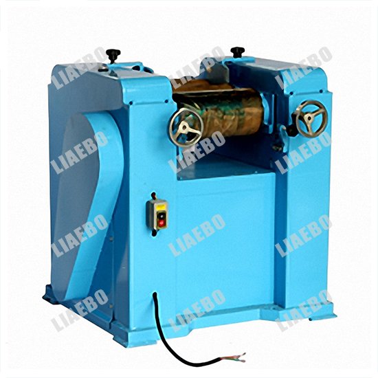 三辊研磨机该设备由三个辊筒组成,装在一个机架上,由电动机直接带动。一般辊筒间的转动方向不同,前辊向前转动,中辊向后转动。辊子转速前辊快、后辊慢。中间辊固定,前后两辊装在滑道上,有弹簧装置,用手轮调节前后辊与中辊的距离。物料由后辊与中辊之间进入,受到辊筒的挤压,产品颗粒变细,然后由快辊带出,快辊末端装有刮刀,使物料与辊筒分离,落入收集桶内。