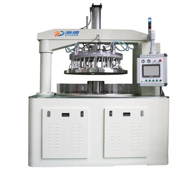 HD-16B双面研磨机性能特点:1.本机主体采用一次成型工艺,合理的结构大大提升整机刚性度2上盘系统设计了三点平衡系统,保证了上盘落下时与下盘的平行度3齿圈,太阳轮、液盆同步齿轮抬升,任意位置自锁可停