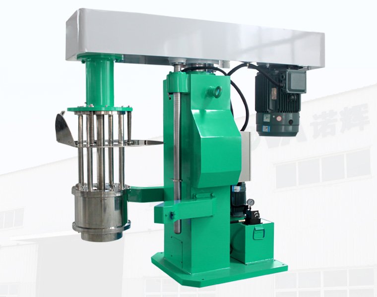 部与分散盘之间产生强大的吸力将物料从研磨篮内甩出,形成高效的物料分散混合;通过液压泵的工作驱动工程油缸升降,从而带动整个工作机构升